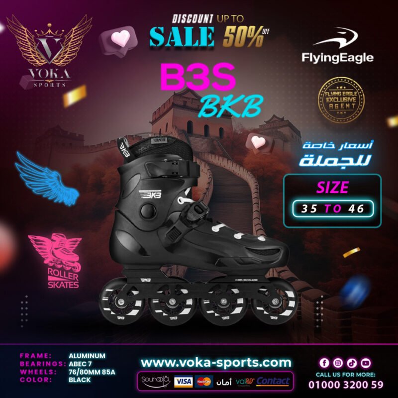 حذاء تزلج بعجلات ماركة فلاينج إيجل ( BKB B3S ) أسود