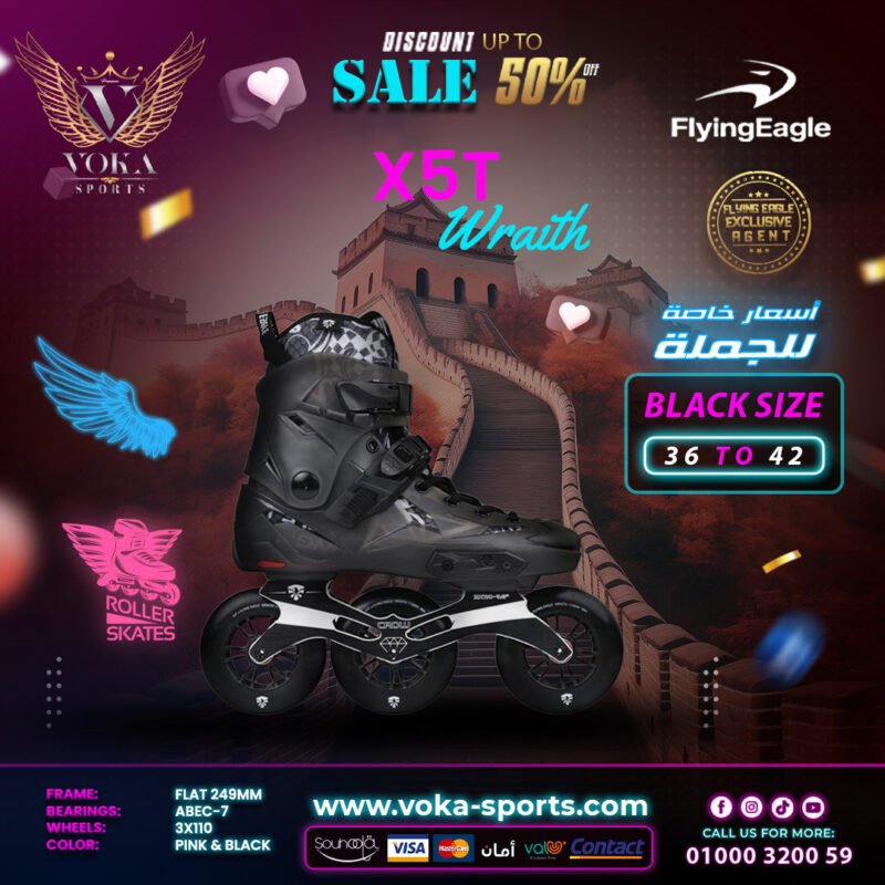حذاء تزلج بعجلات ماركة فلاينج إيجل ( X5T WRAITH ) أسود