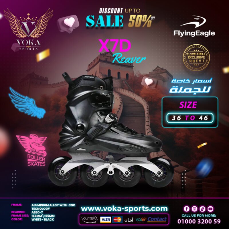 حذاء تزلج بعجلات ماركة فلاينج إيجل ( X7D REAVER ) أسود