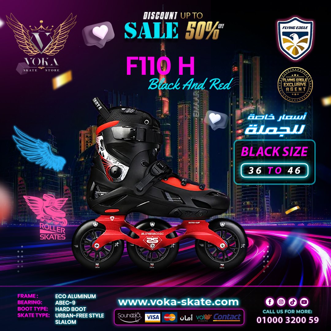 حذاء تزلج بعجلات ماركة فلاينج إيجل ( F110H ) أسود مع أحمر