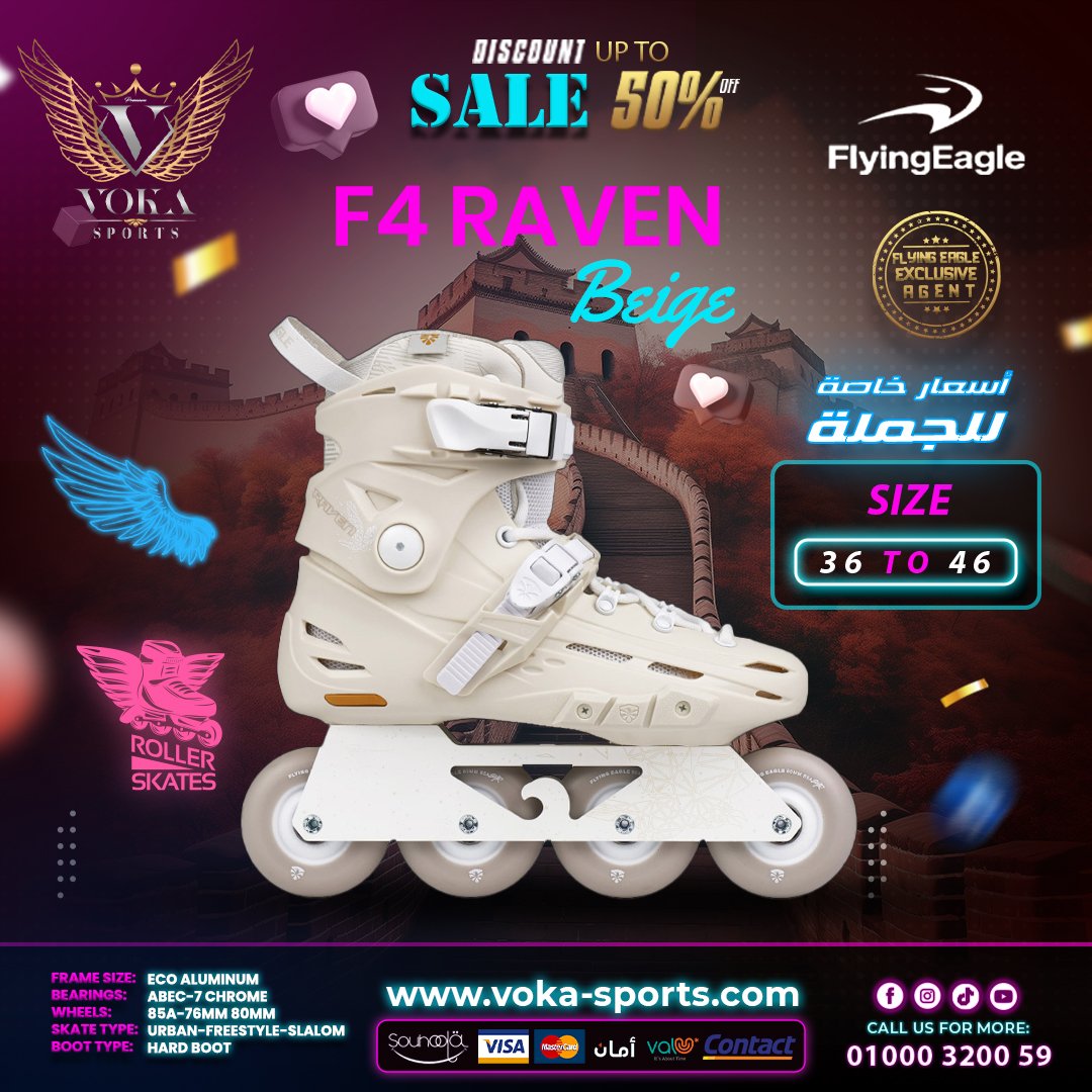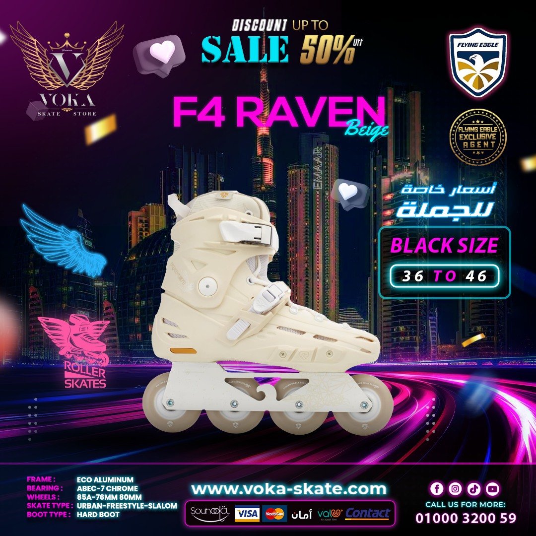 حذاء تزلج بعجلات ماركة فلاينج إيجل ( F4 RAVEN NEW ) بيج