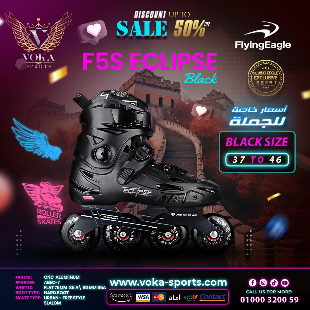 حذاء تزلج بعجلات ماركة فلاينج إيجل ( F5S ECLIPSE ) أسود