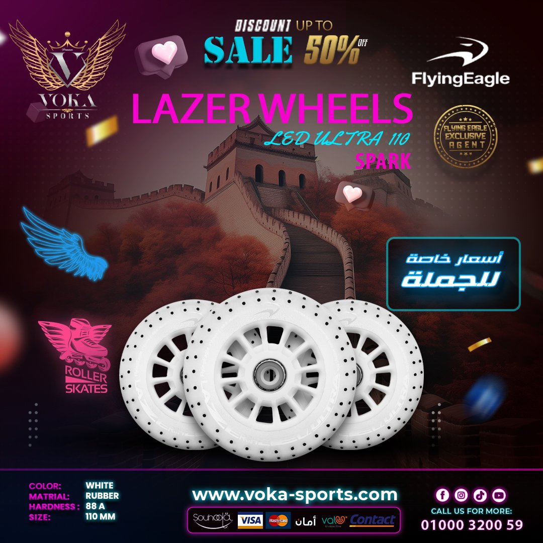 كن أول من يقيم “عجلات لأحذية التزلج فلاينج إيجل ( LAZER LED ULTRA SPARK ) 110مم أبيض” إلغاء الرد