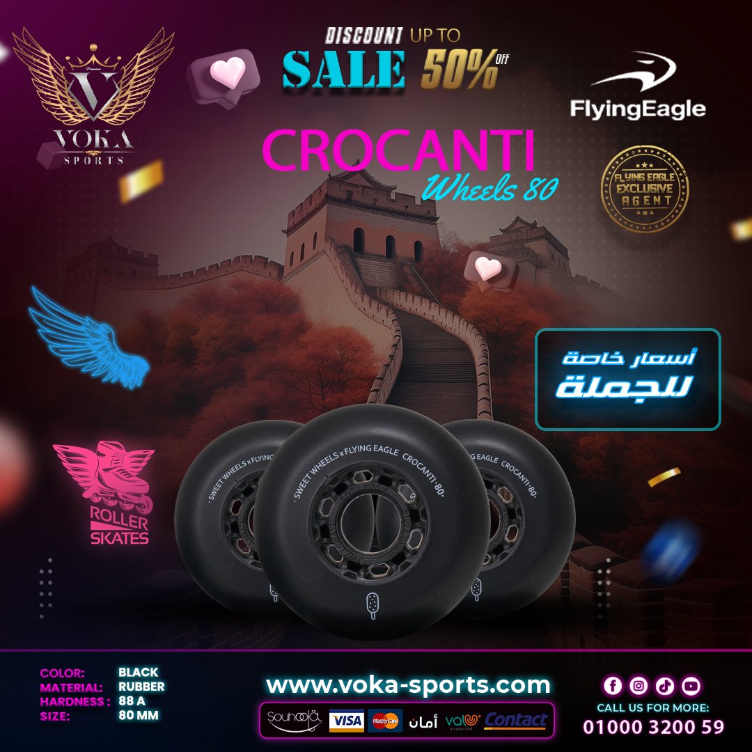 عجلات لأحذية التزلج فلاينج إيجل ( CROCANTI ) أسود 80 مم