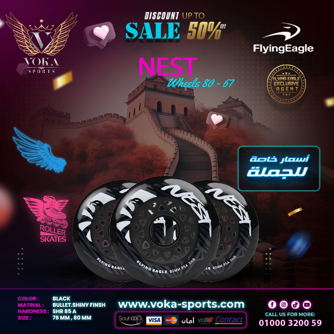 عجلات لأحذية التزلج فلاينج إيجل ( NEST ) أسود لامع