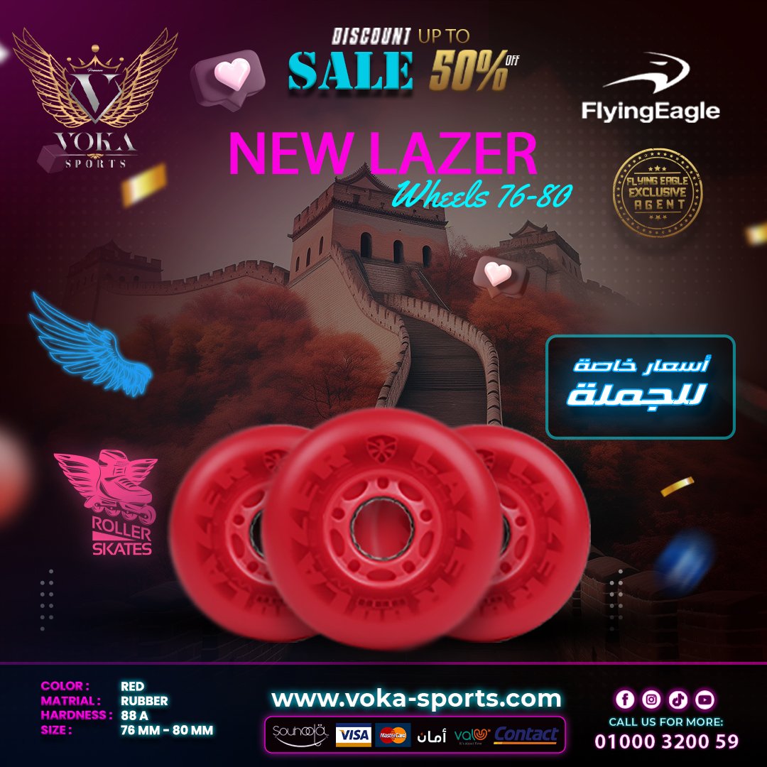 عجلات لأحذية التزلج فلاينج إيجل ( NEW LAZER LED ) أحمر